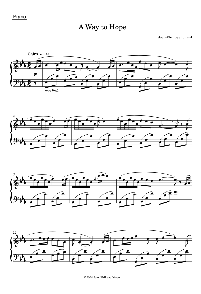 Piano sheet music of "A Way to Hope"