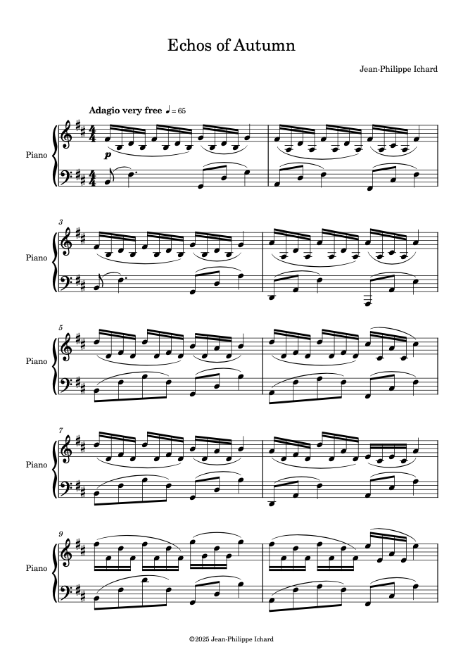 Piano sheetmusic of "Echos of Autumn"